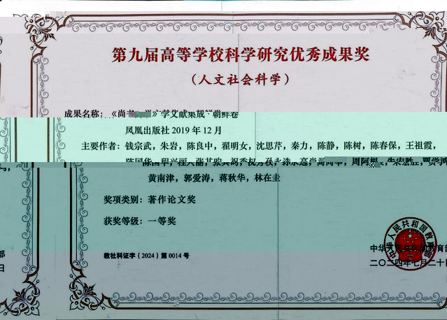 高等學校科學研究優秀成果獎(人文社會科學)是教育部為表彰獎勵高校哲學社會科學工作者取得的突出成績,鼓勵嚴謹治學、勇于創新、鑄造精品,推動高校加快構建中國特色哲學社會科學、建構中國自主知識體系的重大舉措。獎項于1995年設立,在高校領域及全國社科戰線有着重要影響。第九屆成果獎評獎工作于2022年年初啟動,共産生獲獎成果1496項(含香港、澳門高校獲獎成果)。其中,著作論文獎1196項,咨詢服務報告獎76項,普及讀物獎21項,青年成果獎203項。
